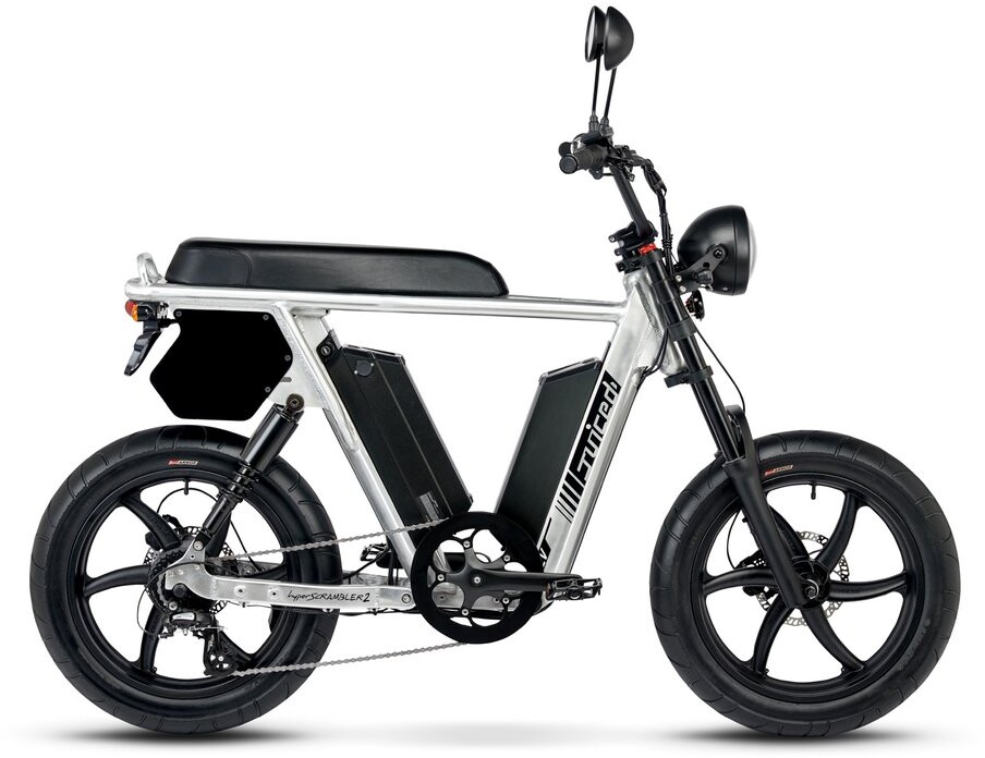 El Juiced Bikes HyperScrambler 2 es un Ciclomotor Eléctrico de alta calidad del fabricante de bicicletas eléctricas Juiced Bikes de California, EE. UU. La empresa fue fundada en 2009 por el saltador de altura olímpico y cinco veces campeón estadounidense Tora Harris, quien se graduó de la Universidad de Princeton con un título en Ingeniería Mecánica y Aeroespacial.