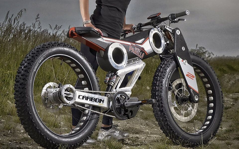El Moto Parilla Carbon Mimetica es un innovador híbrido de bicicleta eléctrica y ciclomotor de la marca italiana Moto Parilla. La marca se remonta a 1912 y fue en su momento una marca popular de motocicletas y scooters en EE.UU. (motoparilla.org).